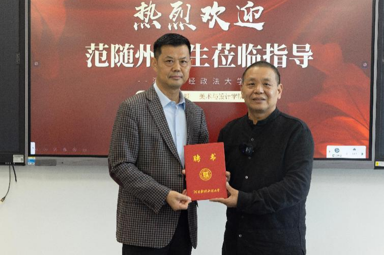 副校长、人文艺术学部部长王利军代表学校为范随州颁发客座教授聘书,并对其在文化传承与艺术创新领域的贡献给予高度评价。他表示,当前国家正大力推动实施人才强国战略和文化强国战略,范随州先生入驻我校,将更好地推动学校服务地方经济发展和文化传播。