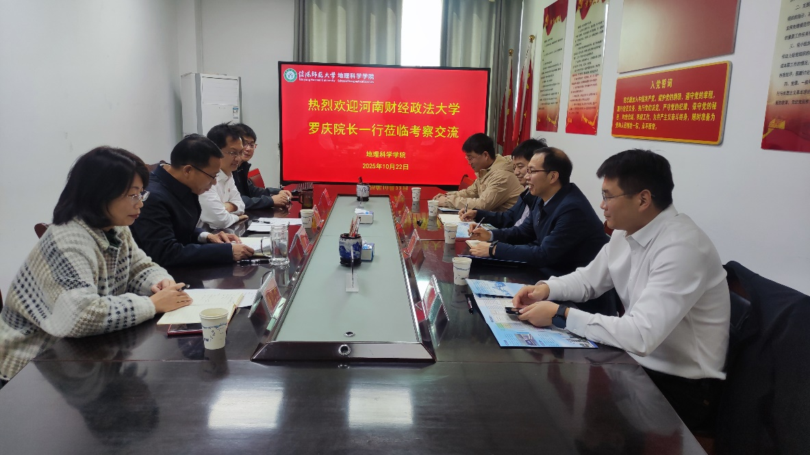 10月22日,城乡规划学院院长罗庆一行赴信阳师范大学地理科学学院,与该学院副院长颜俊、闫军辉座谈交流。