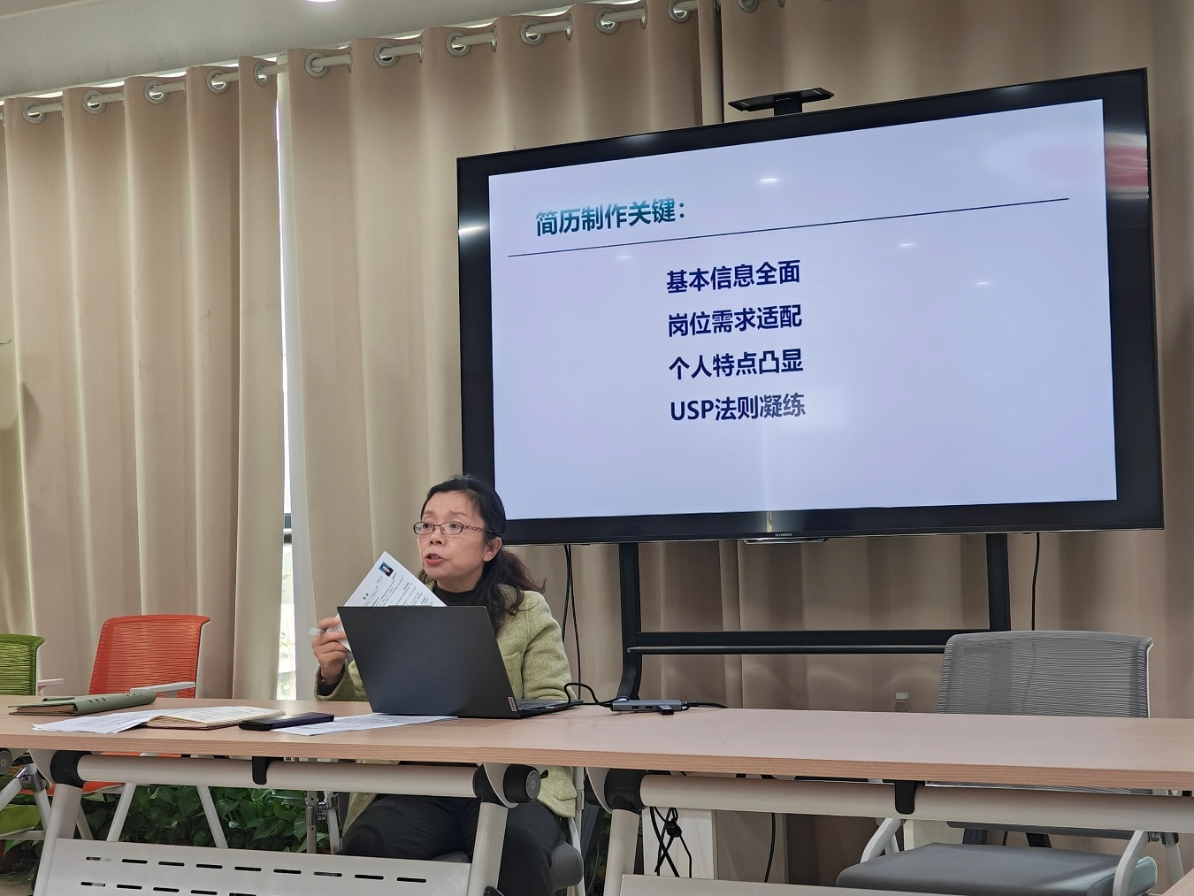 杨睿表示,当前正值秋招黄金期,辅导员要主动利用团体辅导与个别指导相结合的方式,帮助学生完成简历优化,运用AI工具辅助诊断,提升简历指导效率与专业性。