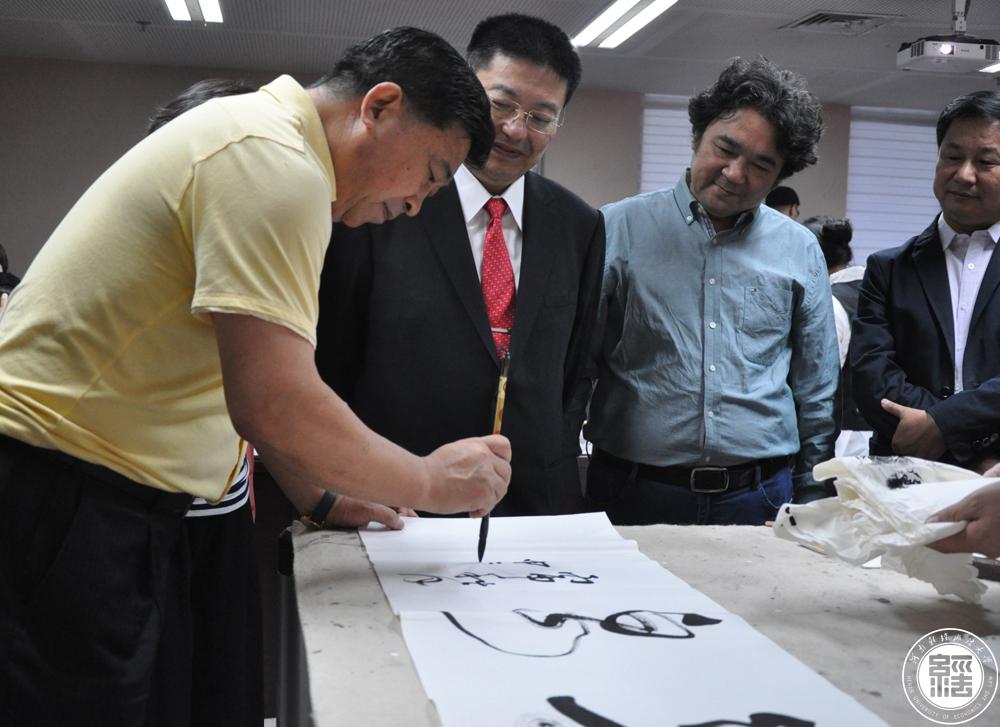 交流活动中,吕文慈在会上介绍了台湾中国文化大学的基本情况和特色专业,对相关文化艺术的交流谈了自己的体会。李仲党对台湾中国文化大学的来访进行说明,对交流的相关文化理念和意义进行阐述。副校长薛玉莲介绍了我校的办学理念以及近年来取得的成绩,并表示两校之间的文化交流有利于营造文化艺术交流的良好氛围,希望以后能有更多的学习交流,艺术系负责人就艺术系学科建设、特色专业、人才培养等方面进行了简要的阐述。省书协理事申慧生现场进行了“文化情系两岸,同胞友谊常在”等书法作品展示。访问团观看了展现我校校情概况的宣传片,并参观了我校综合楼,图书馆等场地。