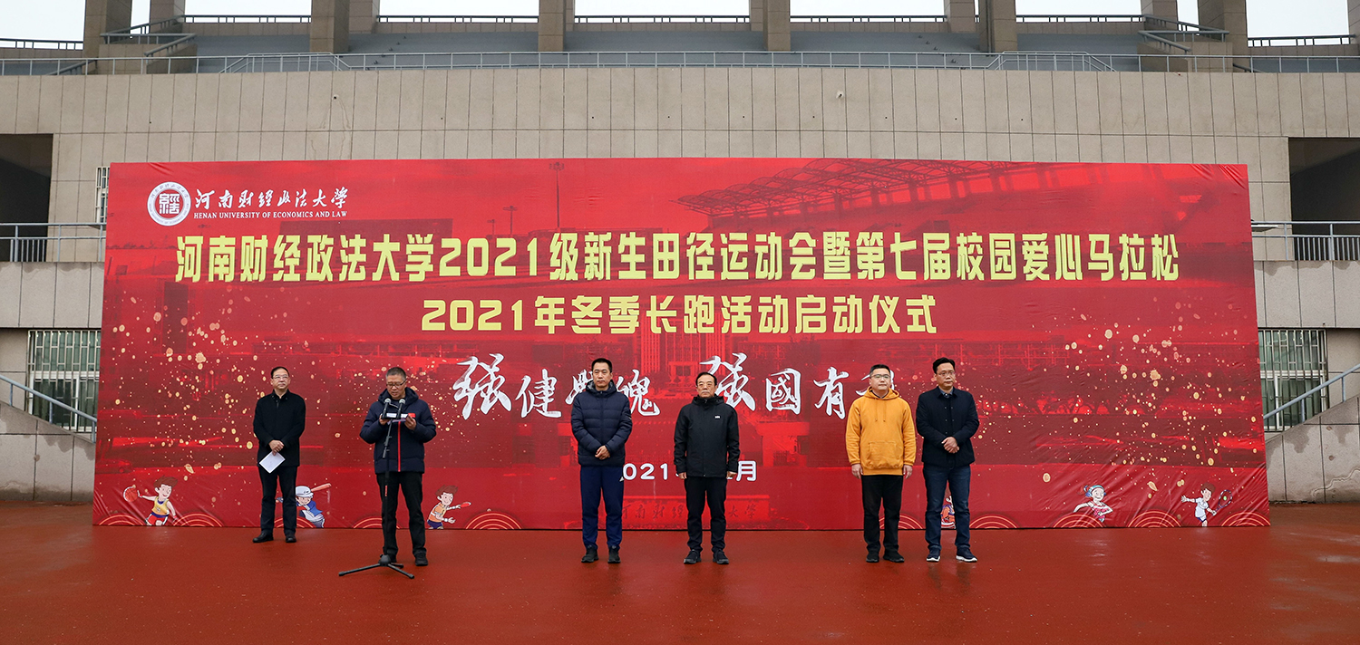“强健体魄,强国有我”,12月11日,我校2021级新生田径运动会暨第七届校园爱心马拉松2021年冬季长跑活动在郑东校区举行。校党委副书记、工会主席李慧军,副校长李观虎出席开幕式,相关部门负责人、裁判代表、部分选手代表参加活动。