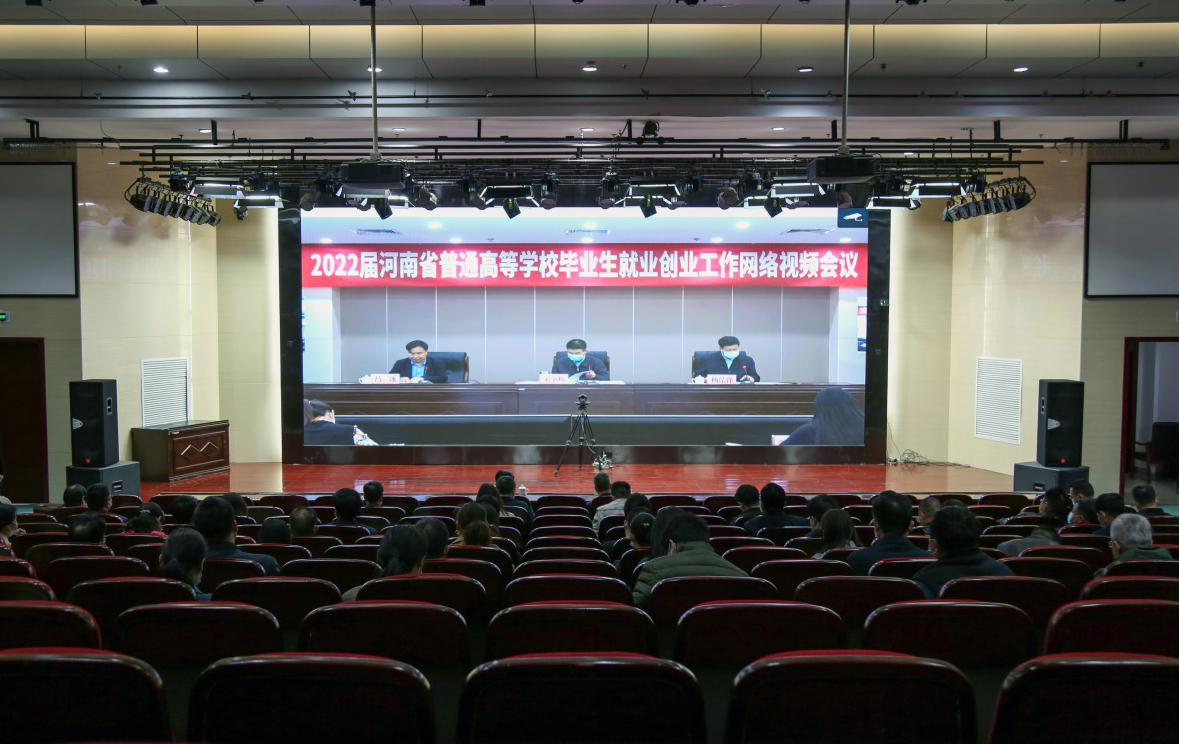 3月4日,2022届全省普通高等学校毕业生就业创业工作网络视频会议在郑州举行,省教育厅党组书记、厅长宋争辉,省人力资源和社会保障厅副厅长杨昆锋出席会议并讲话。我校在郑东校区设立分会场,校党委副书记、工会主席李慧军,副校长刘荣增,相关职能部门负责人、院系级党委(总支)副书记、毕业班辅导员参加会议。