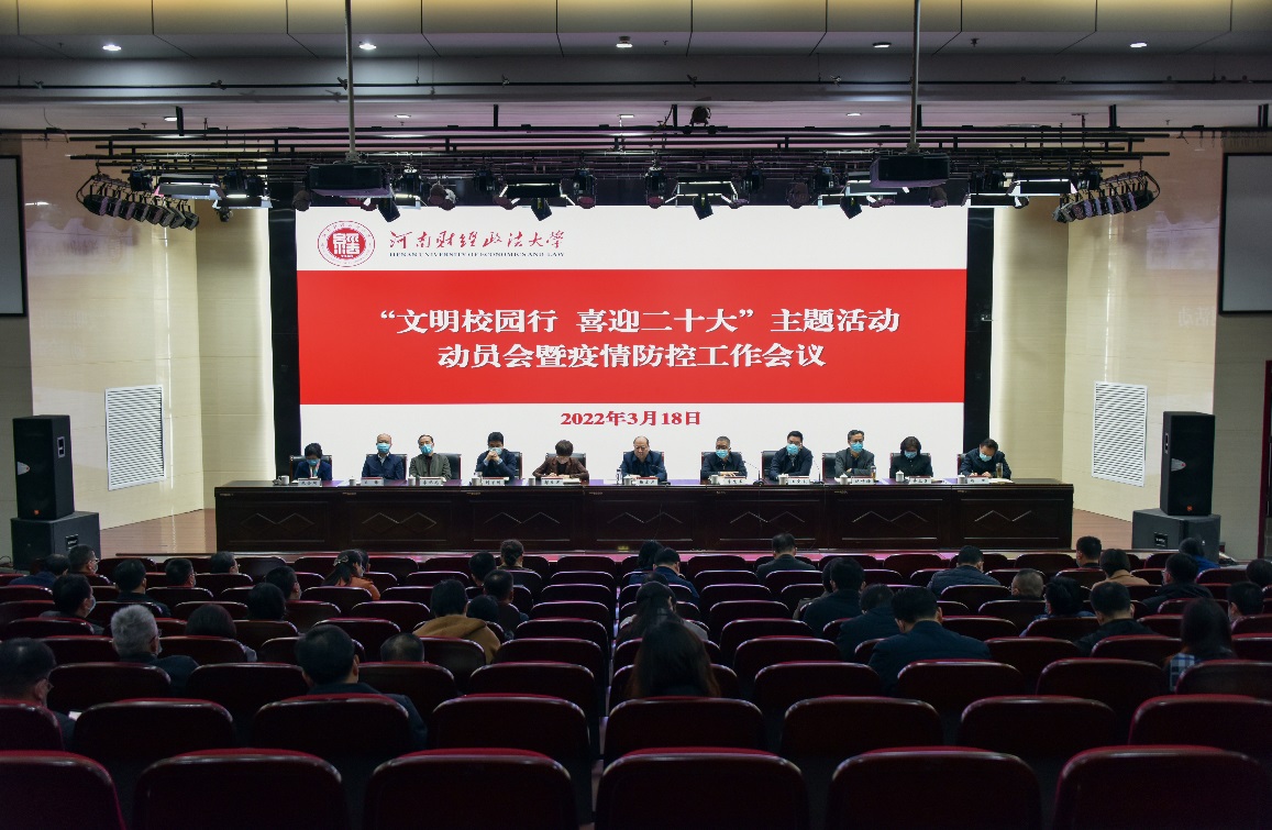 3月18日上午,我校在郑东校区召开“文明校园行 喜迎二十大”主题活动动员会暨疫情防控工作会议。校党委书记杨宏志等全体校领导出席会议,各院系级党组织书记、学校疫情防控办各专项工作组负责人参加会议。会议由校党委副书记、工会主席李慧军主持。
