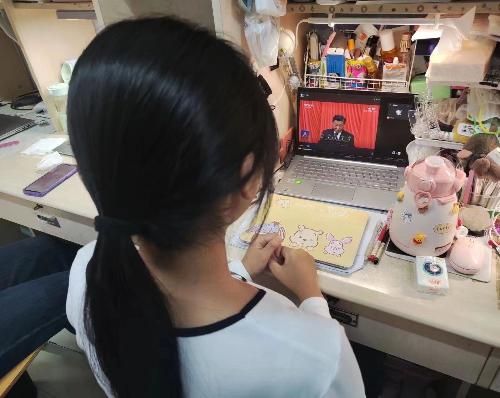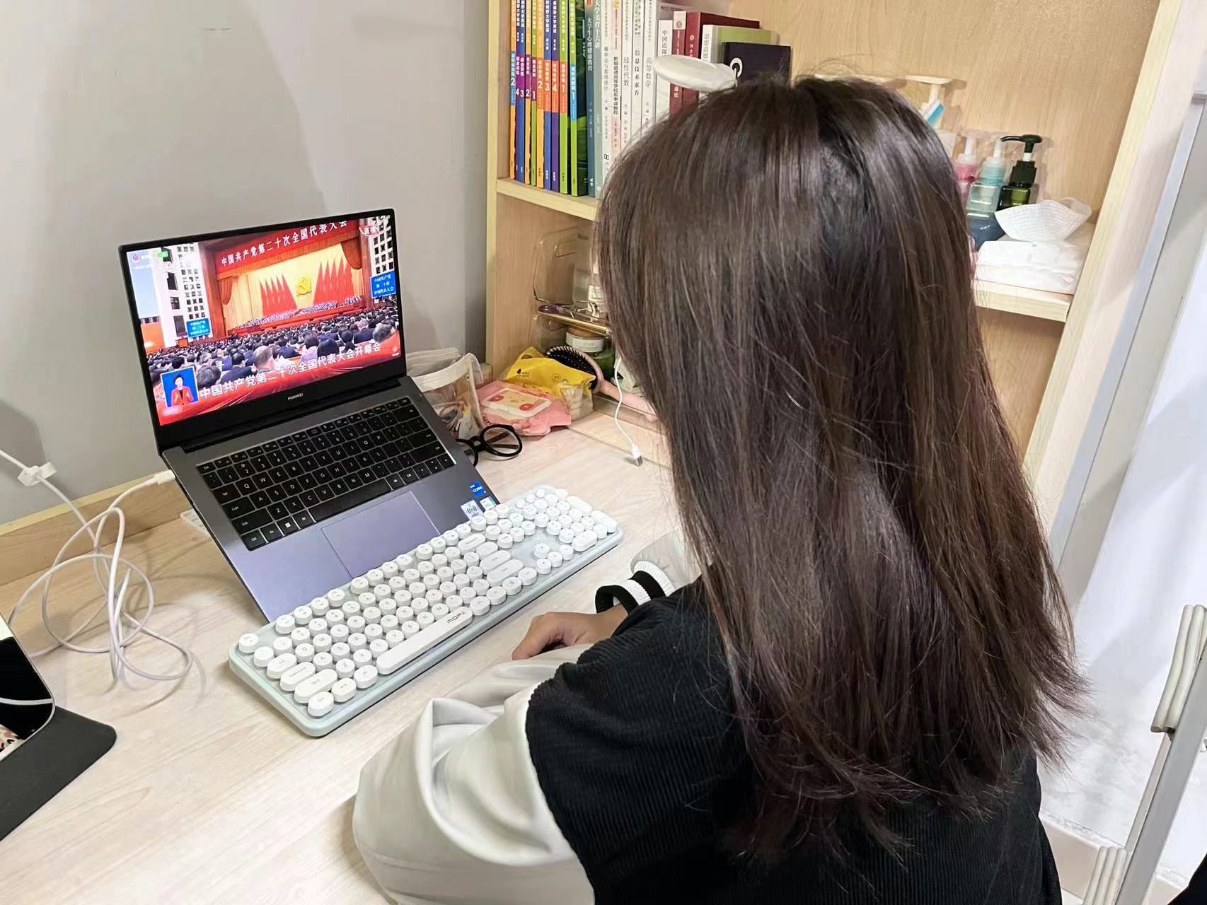 外语学院、计算机与信息工程学院、统计与大数据学院的学生们在看完党的二十大开幕会后,这样的感悟更加强烈:“作为一名大学生,我们要努力把学习与实践相结合,磨砺自己的品格和意志,保持思想上的纯洁性和学习上的积极性;在日常生活中,我们要严格按照学校的标准要求自己,遵守学校纪律,服从学校安排,在疫情防控等各方面为同学们做好服务。”