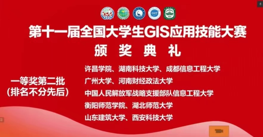 11月18日-20日,第十一届全国大学生GIS应用技能大赛在成都理工大学举办。我校资源与环境学院学生詹妮、申安诺、邵文婷、姚浩琪组成的参赛团队,在刘凯、张海涛两位老师的指导下代表我校参赛并一举斩获全国一等奖。这也是我校连续两年在全国大学生GIS应用技能大赛中获得全国一等奖。