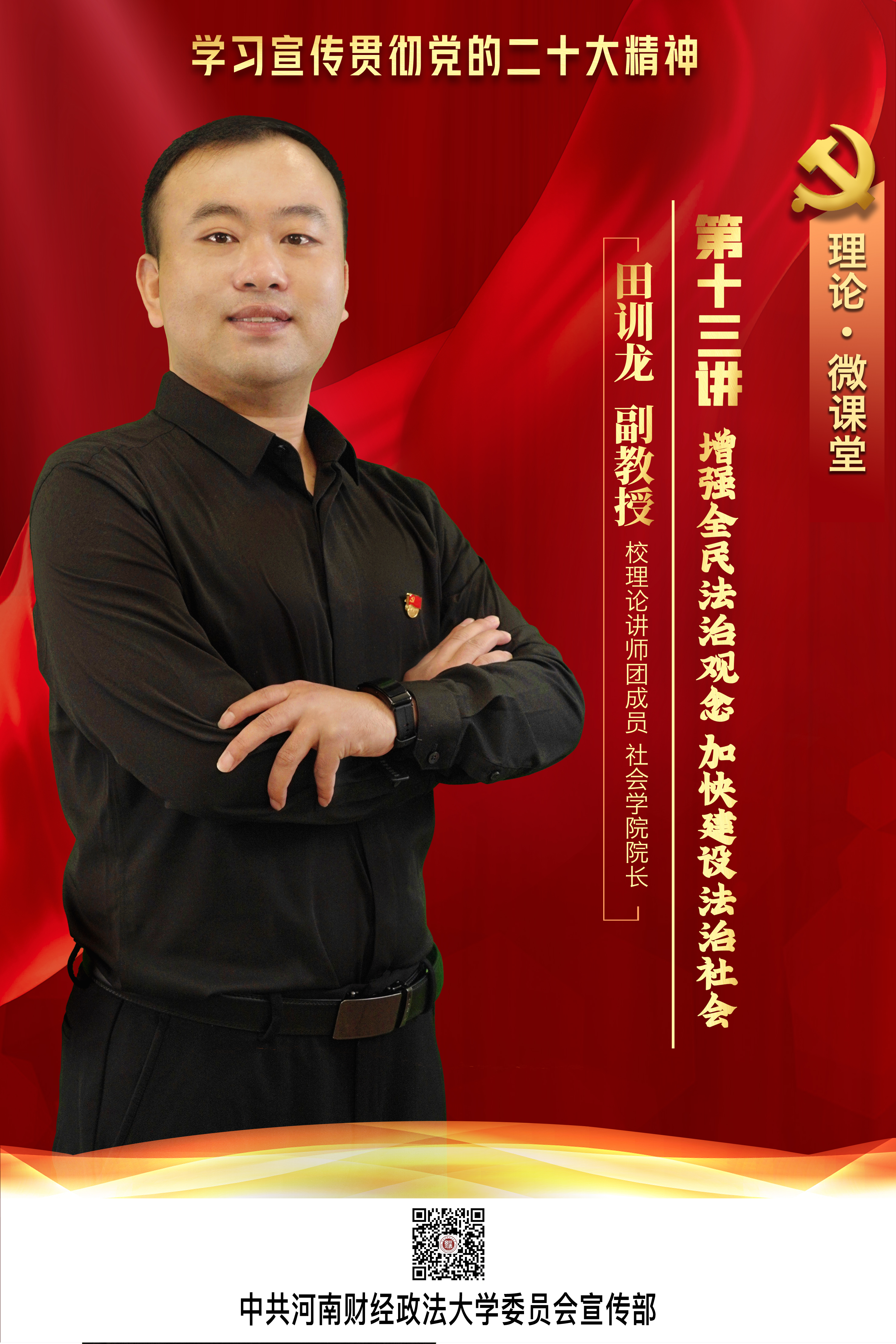 今天,一起进行第十三讲的学习:由校理论讲师团成员、社会学院院长田训龙主讲的《增强全民法治观念 加快建设法治社会》。