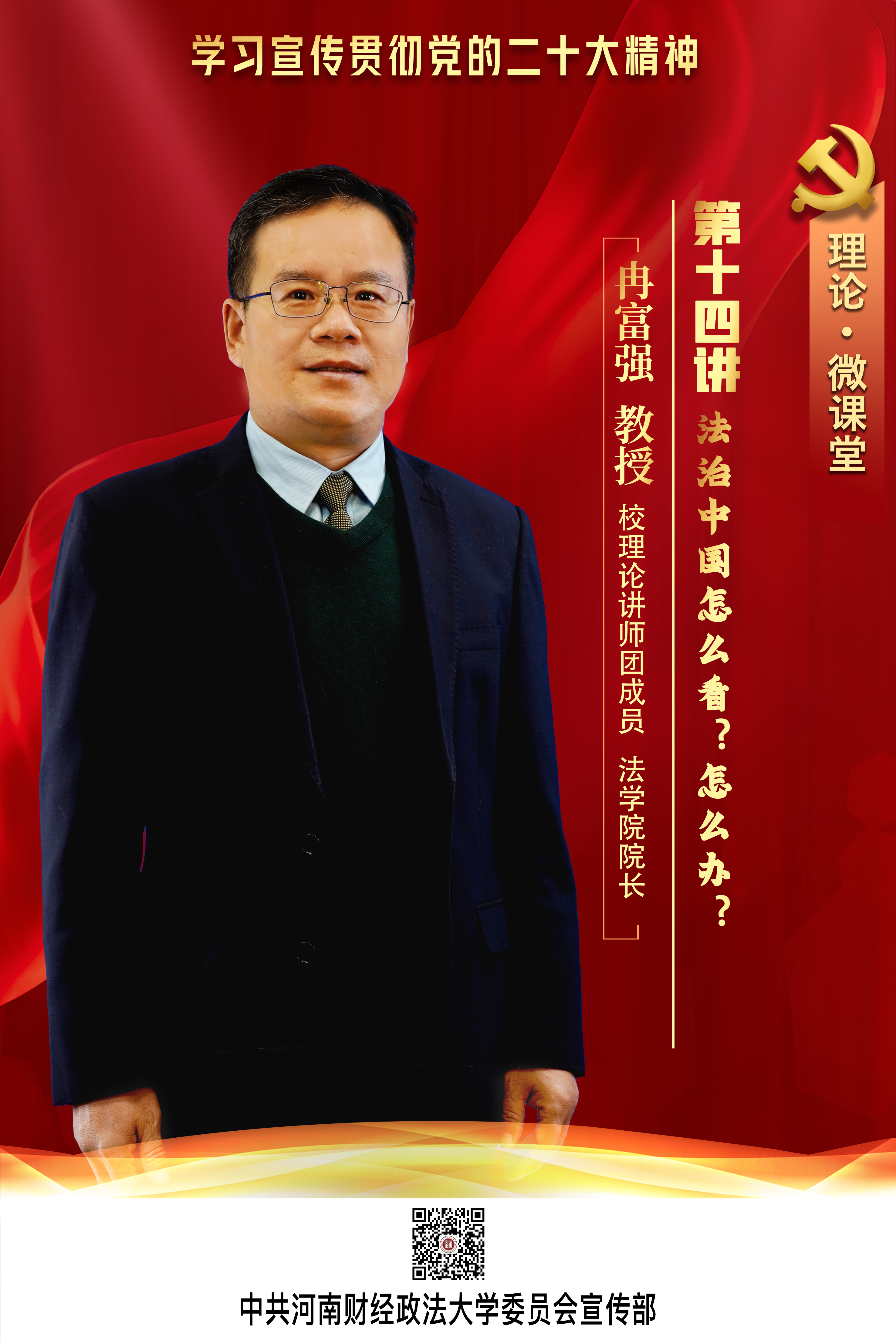 今天,一起进行第十四讲的学习:由校理论讲师团成员、法学院院长冉富强主讲的《法治中国怎么看?怎么办?》。