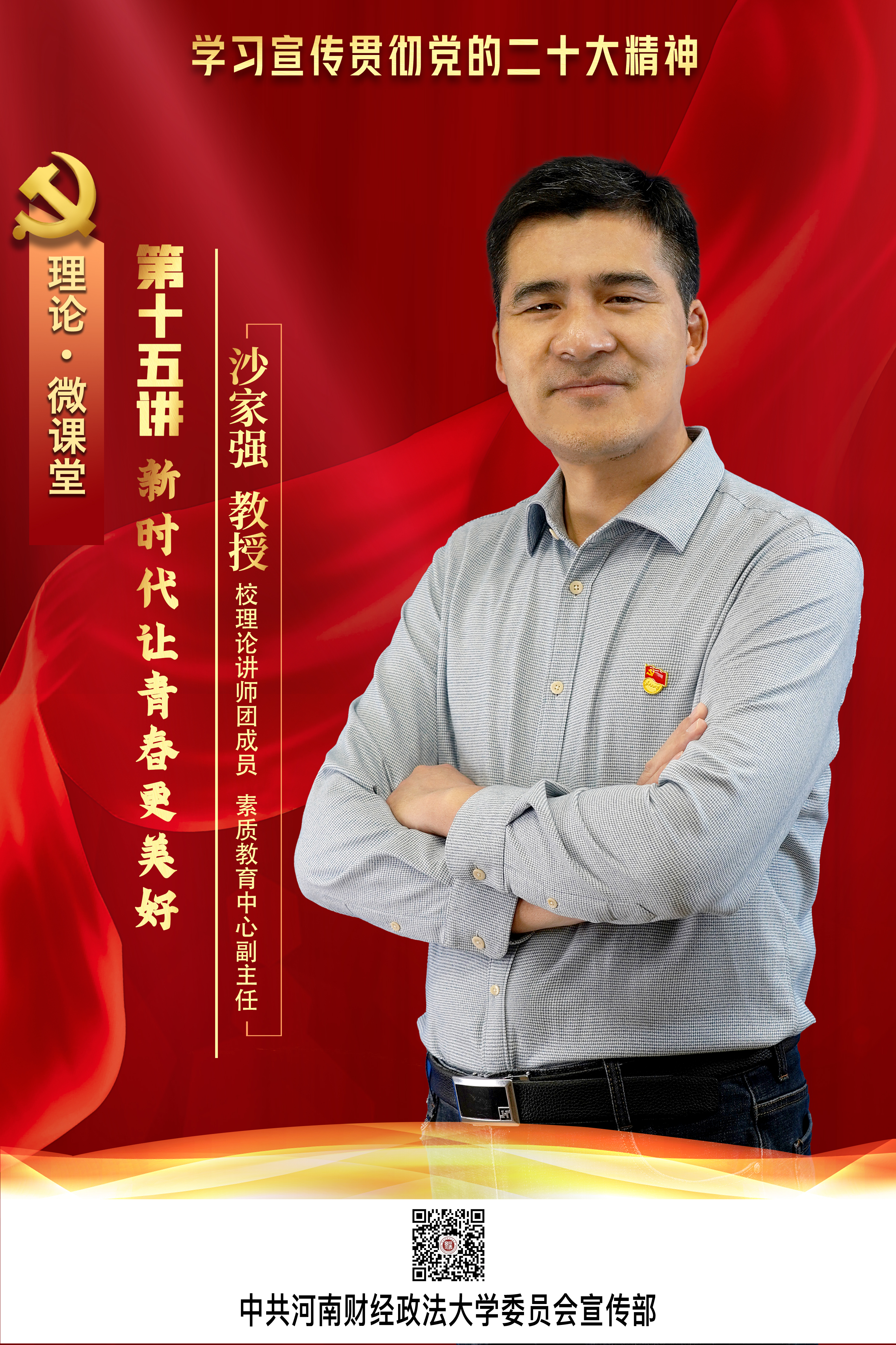今天,一起进行第十五讲的学习:由校理论讲师团成员、素质教育中心副主任沙家强主讲的《新时代让青春更美好》。