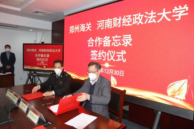郑州海关政治部主任谢永亮在致辞中表示,今年以来,河南财经政法大学与郑州海关开展密切交流合作。7月份,司林胜校长专程带队到郑州海关交流指导,与于洋关长就研究院的建设进行了深入座谈并达成广泛共识,计划在智库建设、课题研究、教育培训、人才培养等方面开展深度合作。截至目前,学校已协助郑州海关完成了《RCEP关税减让对河南省主要产业发展影响及应对策略研究》《河南省跨境电商出口海外仓建设研究》等研究报告,郑州海关与学校的合作效果已初步显现。相信与财大签订合作备忘录,将有利于形成多层次、多领域的交流合作机制,为推动我省“十大战略”和开放强省建设提供强有力的理论支撑和智力支持。