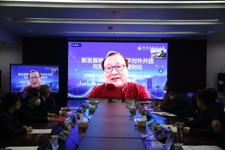 12月30日上午,河南对外贸易高质量发展研究院成立大会暨贸易高质量发展论坛在我校举办。河南省商务厅副厅长李若鹏、郑州海关政治部主任谢永亮及国内相关知名专家出席成立大会和发展论坛,我校党委书记、校长司林胜出席会议并代表学校致辞,副校长赵传海主持会议。
