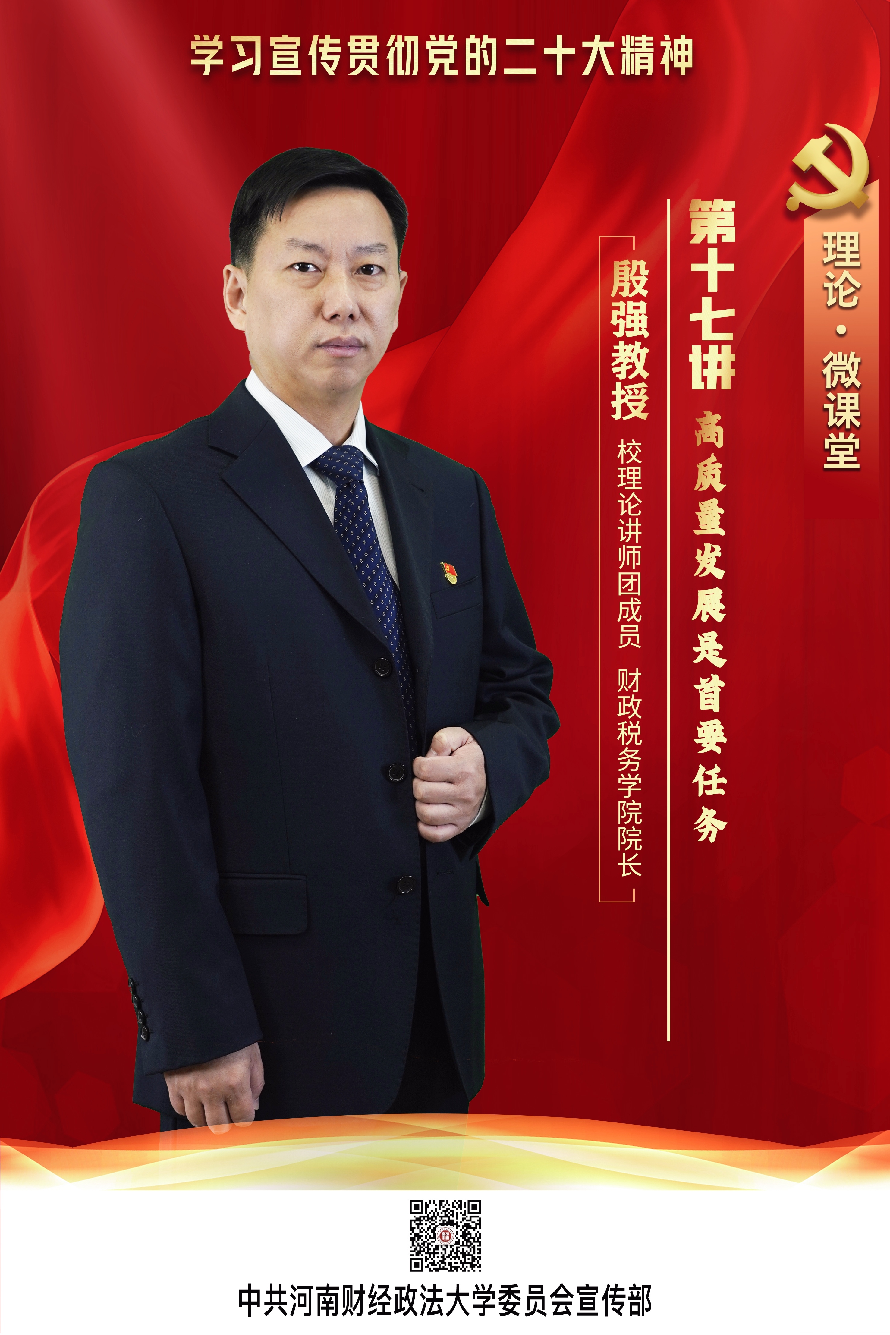 今天,一起进行第十七讲的学习:由校理论讲师团成员、财政税务学院院长殷强主讲的《高质量发展是首要任务》。