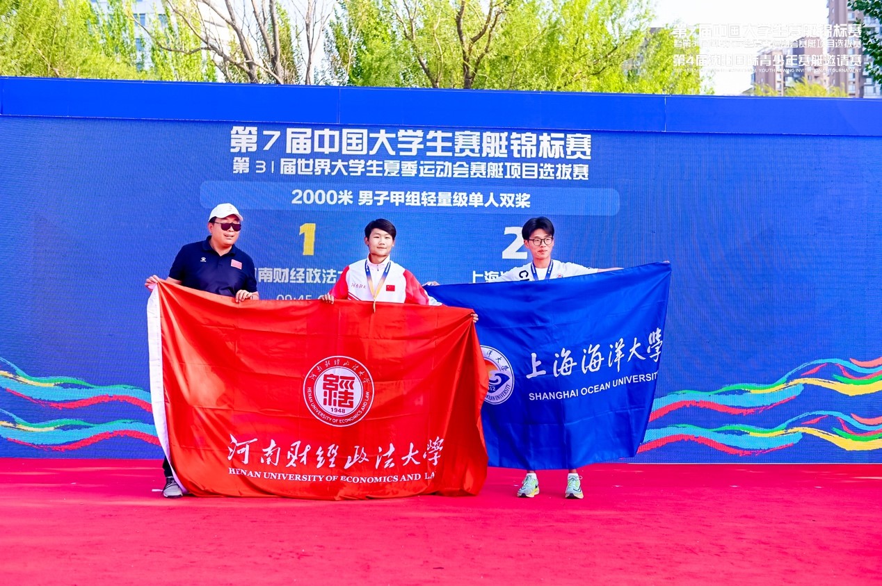 在为期5天的赛事中,我校赛艇队成员王义芃(工程管理与房地产学院学生)在男子甲组轻量级单人双桨2000米的项目中夺得冠军,并取得了世界大学生夏季运动会赛艇项目选拔赛资格;刘华钰(法学院学生)、韩笑(工程管理与房地产学院学生)在男子甲组轻量级双人双桨2000米的项目中获得第四名。
