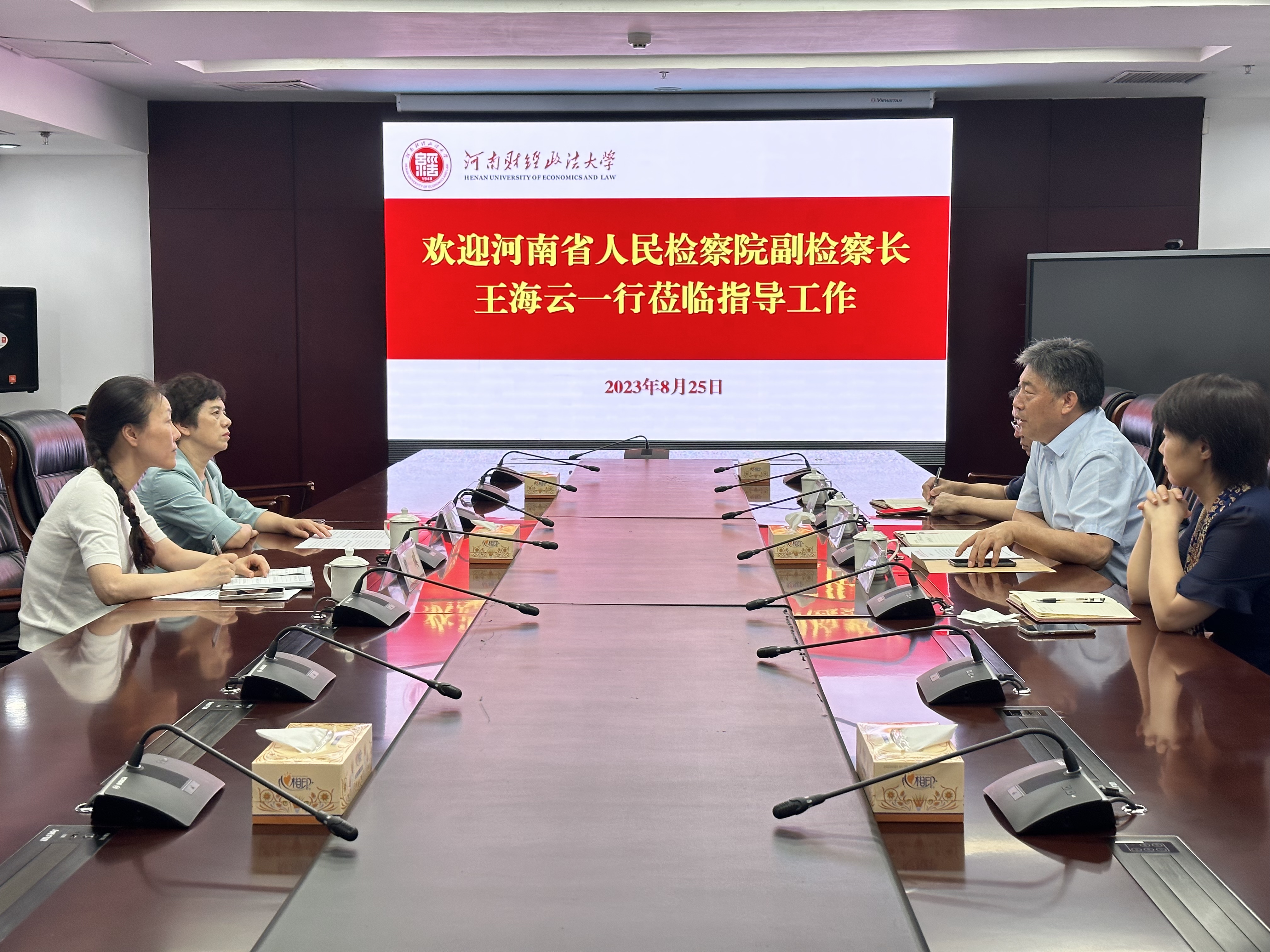 司林胜简要介绍了学校情况。王海云从强化政治统领、创新能动履职、坚持司法为民、全面从严治检、自觉接受监督等5个方面介绍了省人民检察院上半年工作。同时,还围绕加强检察院与我校法学学科合作、知识产权保护、环境资源法立法、未成年人保护等方面进行了座谈交流。司林胜对全省检察工作给予充分肯定,认为全省检察机关依法能动履职,为大局服务、为人民司法、为法治担当,各项检察工作取得了新成效、实现了新发展。
